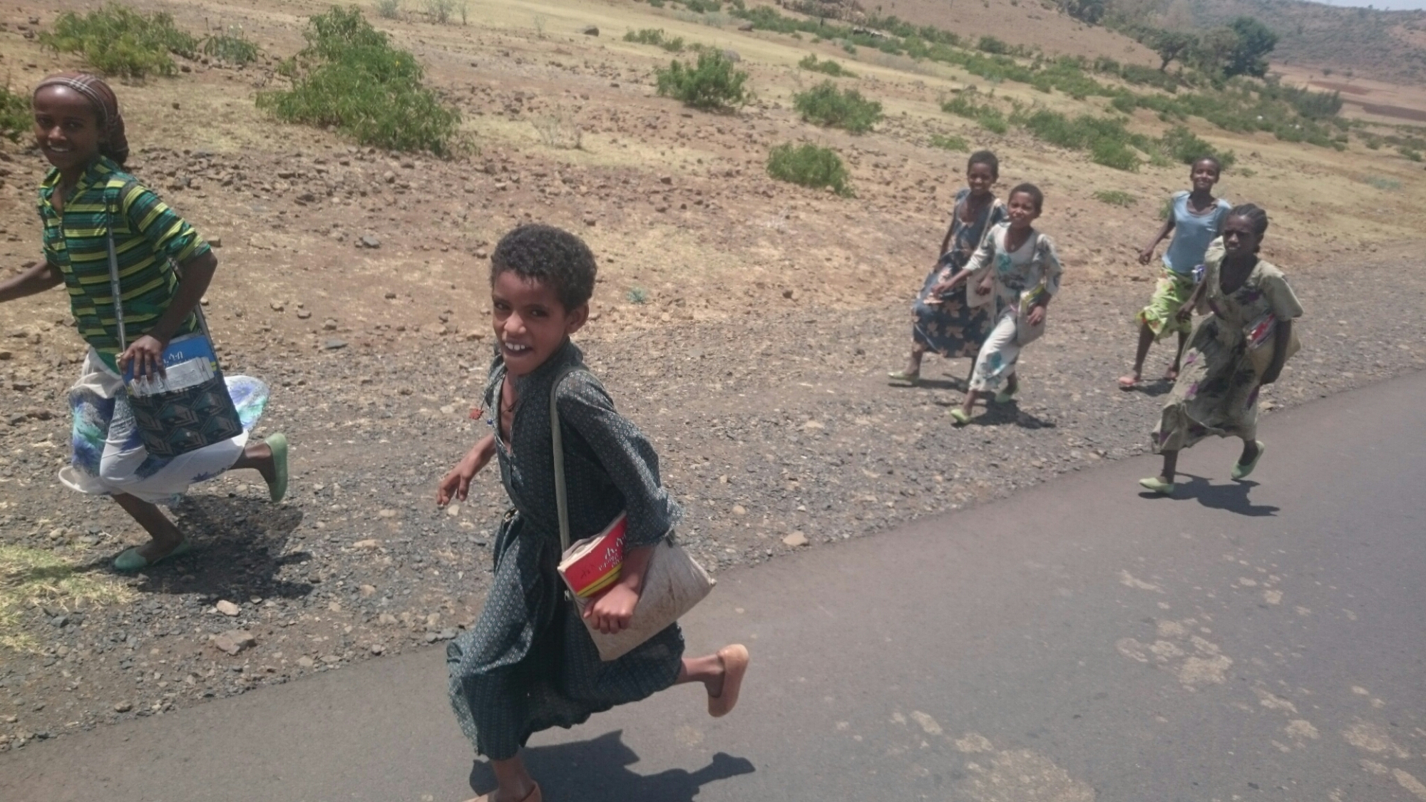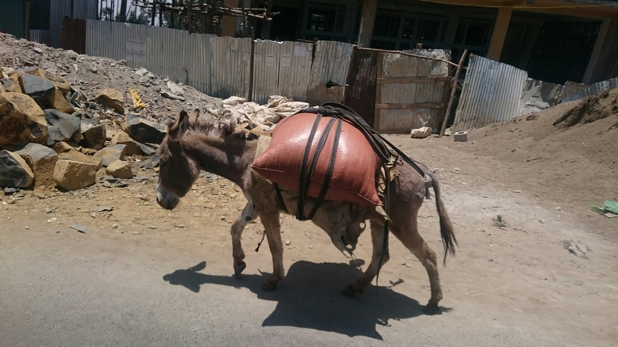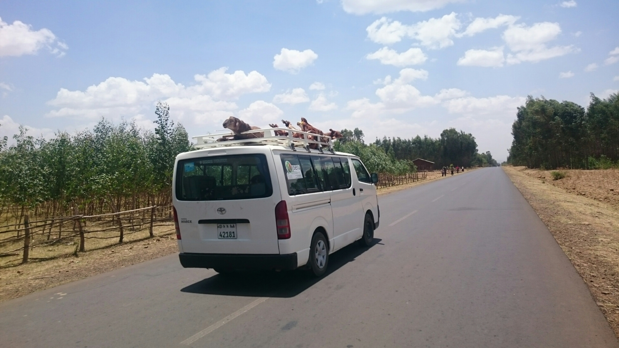 Ellers bød dagen ikke på andet end klassiske etiopiske syn som kvæg der stopper trafikken, mænd der pisker deres tyre til at trække ploven lidt hurtigere, mænd der pisker deres æsler til at trække vognen lidt hurtigere, kvinder der bærer enorme krukker på hovedet, tusindvis af børn der løber efter mig og råber “money” og så selvfølgelig levende geder spændt fast til taget af minibuser (de lyder svært utilfredse som de ligger der).
