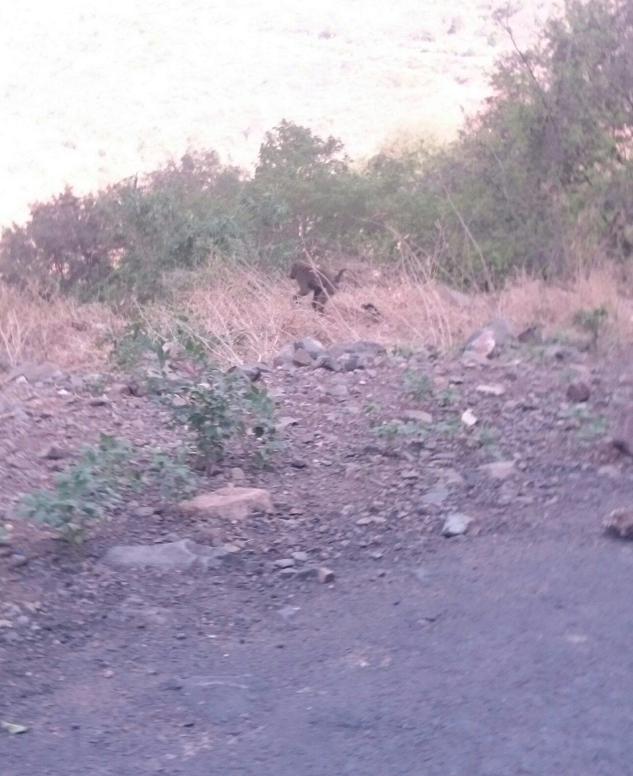 Fik endelig fanget en bavian på et billede, omend det var federe da den lå og slappede af på den varme asfalt