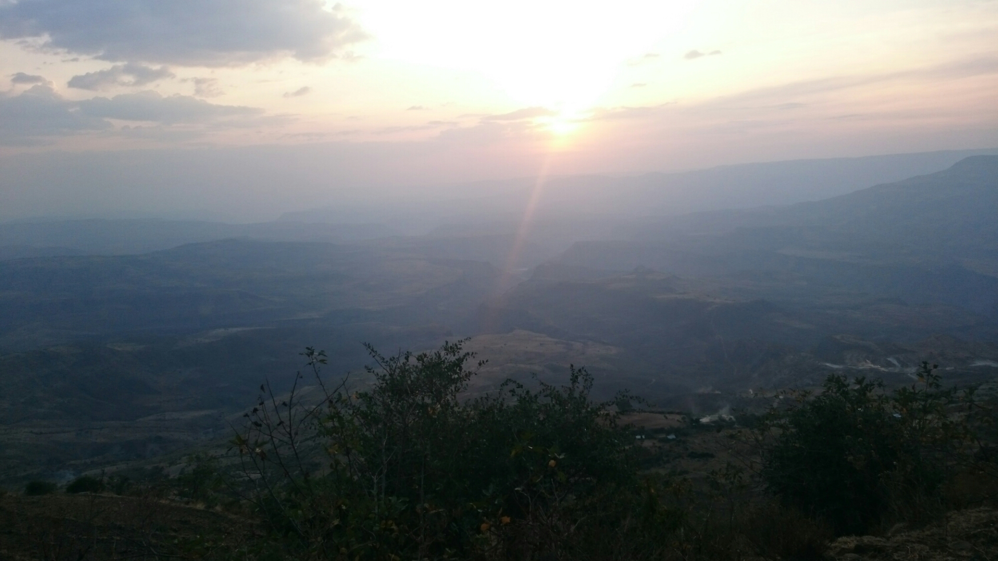 Op over sidste stigning med solen på vej ned. Herfra stod den på dødskørsel i den vanvittige trafik på vejen ned. Tror min mor skal være glad for at jeg ikke filmede turen ned gennem byen. Jeg er desværre af den type der ikke gider at spilde den energi jeg har optjent på stigningerne på at bremse på nedkørselerne. 40km/t zigzag mellem bilerne ned gennem storbyen, hvis der findes en rekord for at krydse Addis Ababa har jeg med garanti slået den idag.