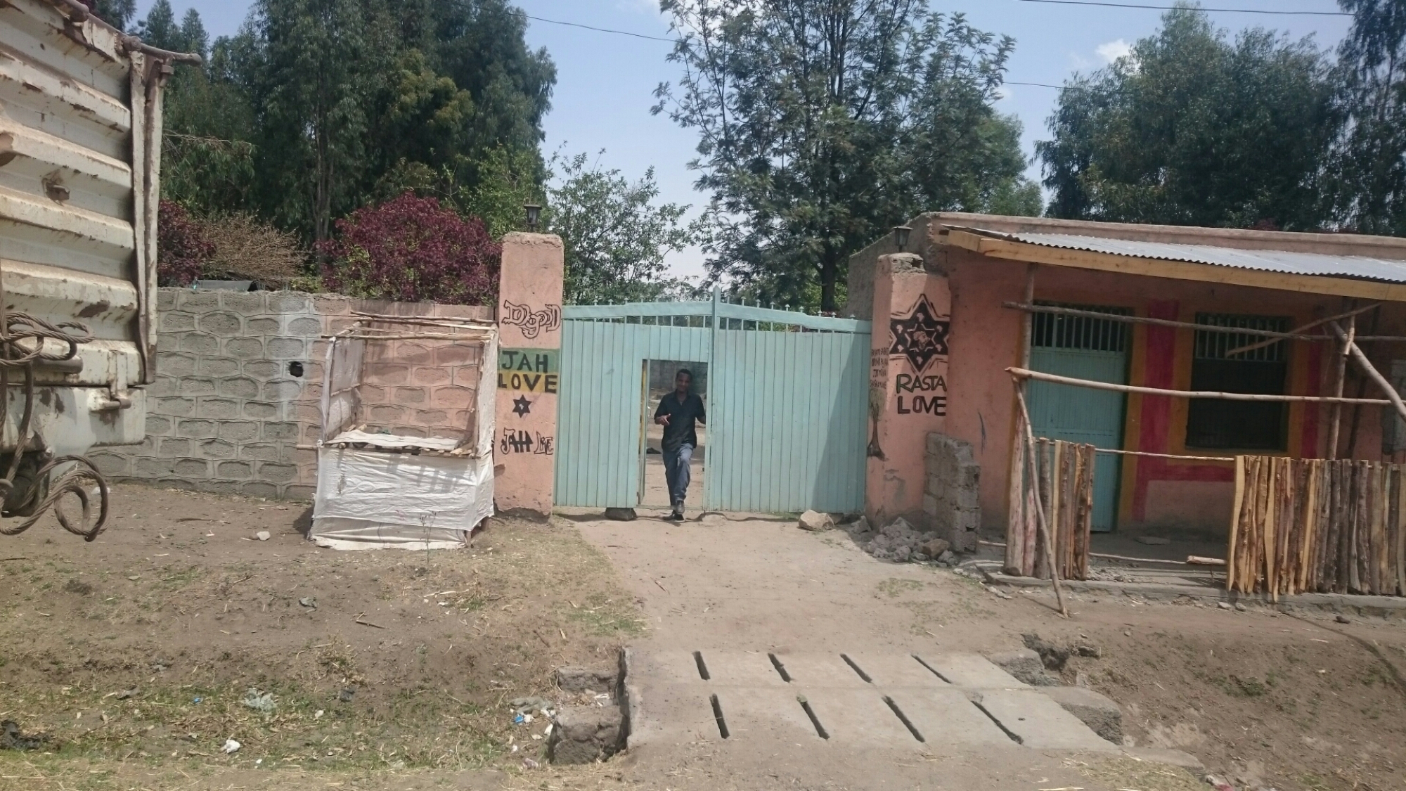 Efter ca. 80 km kom jeg til byen Shashamene. Tilbage i 1948 gav den etiopiske kejser Ras Tafari Makonnen (senere Haile Selassie) et stykke land i byen til den religiøse jamaicanske bevægelse af folk der troede han var den genfødte Jesus, Rastafari bevægelsen. Selv mente den koptisk kristne Tafari vist at de var komplet skøre. Stadig idag er der folk der migrerer dertil, og man kunne tydeligt mærke rasta bevægelsen. Bob Marley kom ud af højtalere fra en hver lille kiosk og på murene blev både hashrygning (ganjah) og Ras Tafari (der jo reelt var en diktator) hyldet.