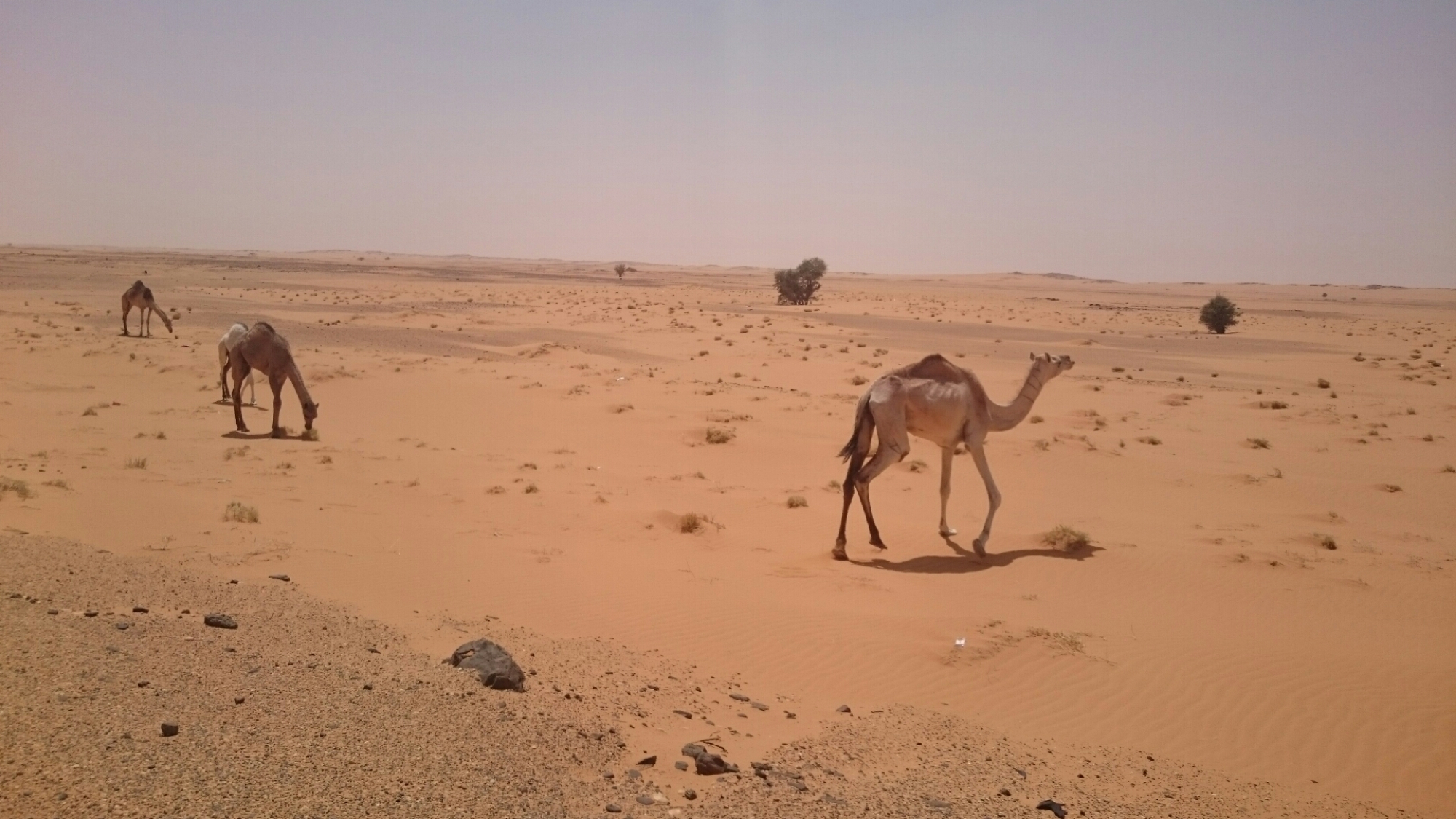 Varmen er vild, og når man sveder og sandet fyger så får man sand de mærkeligste steder, har lige brugt fem minutter på at tømme ørene (mine bussemænd er 80% sand). Var samtidig meget bange for at drikke alt mit vand, men hver 50km står der urner med drikkevand i siden af vejen. Vinden var det meste af dagen i ryggen, så kom på trods af kriser et pænt stykke sydpå. En af de stoppede biler fortalte mig at der ville ligge en landsby langs vejen, hvilket der også gjorde, omend landsby er for meget sagt, men fem lerhuse og en moske, der jeg har fået lov at slå teltet op, er også noget. Altid rart at sove i nærheden af mennesker.