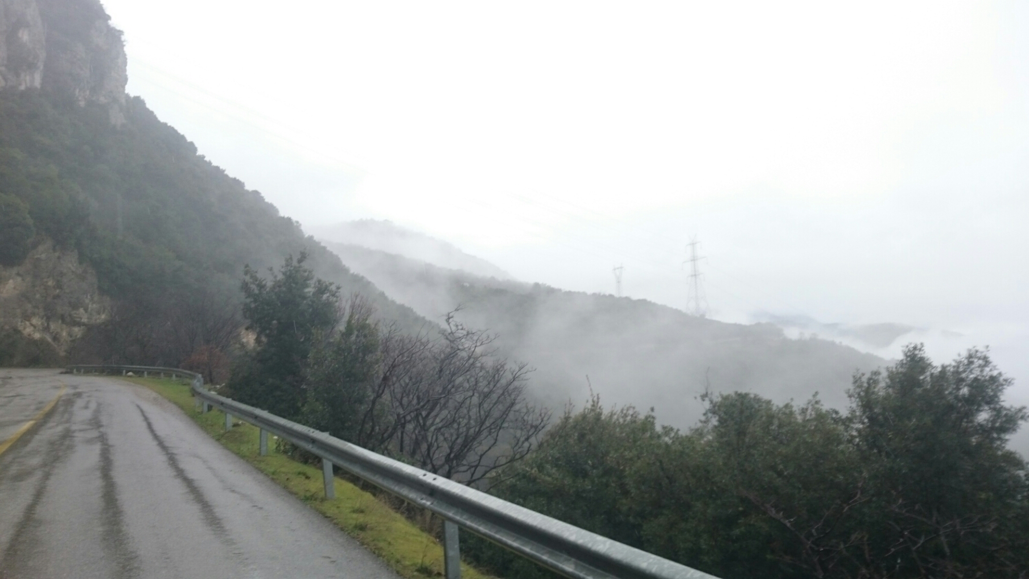 Km 40: andet checkpoint bliver stoppet og må ikke fortsætte, bliver trods protester tvunget ind i en politibil. Er det tætteste jeg på turen har været på at dø, politimanden kører, taler i mobil og skriver i sin kalender samtidig. To soldater på laddet vogter over cyklen med maskinpistoler.