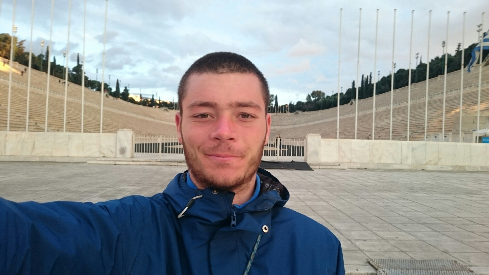 Km 240: politibilen er ved at være godt utålmodig og råber “go go” og “yalla yalla” i en megafon af mig.