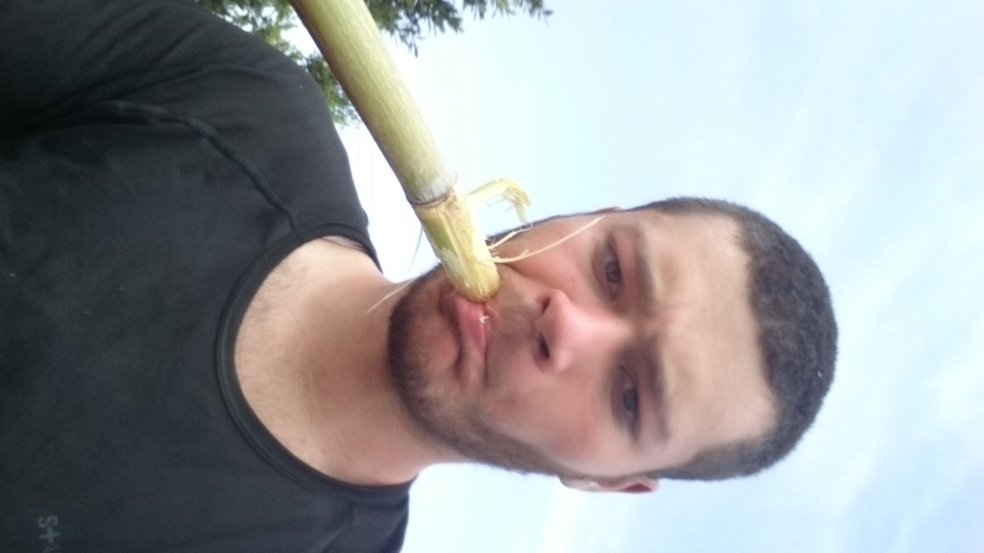 Km 20: stopper hos en vejsidegrønthandler for Bananer ender med at spise (gratis selvfølgelig) mad med ham.